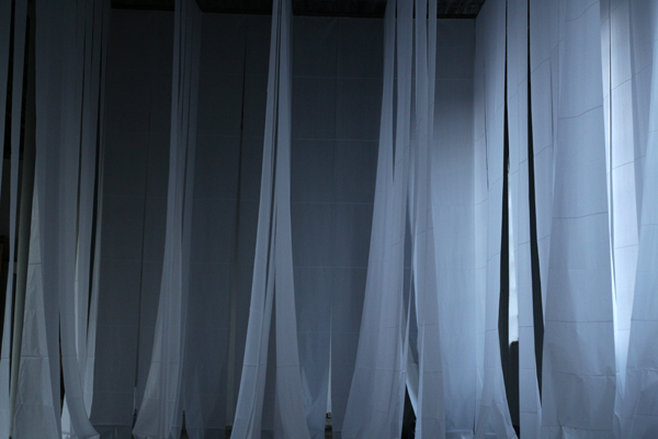 Begehbare Papierskulptur aus ca. 1300 Bögen Seidenpapier, Holzleim, Anglersehne –