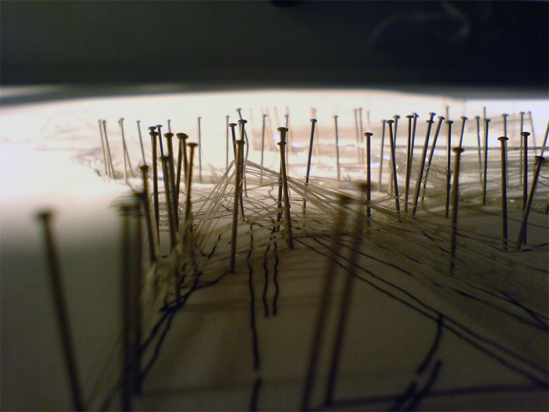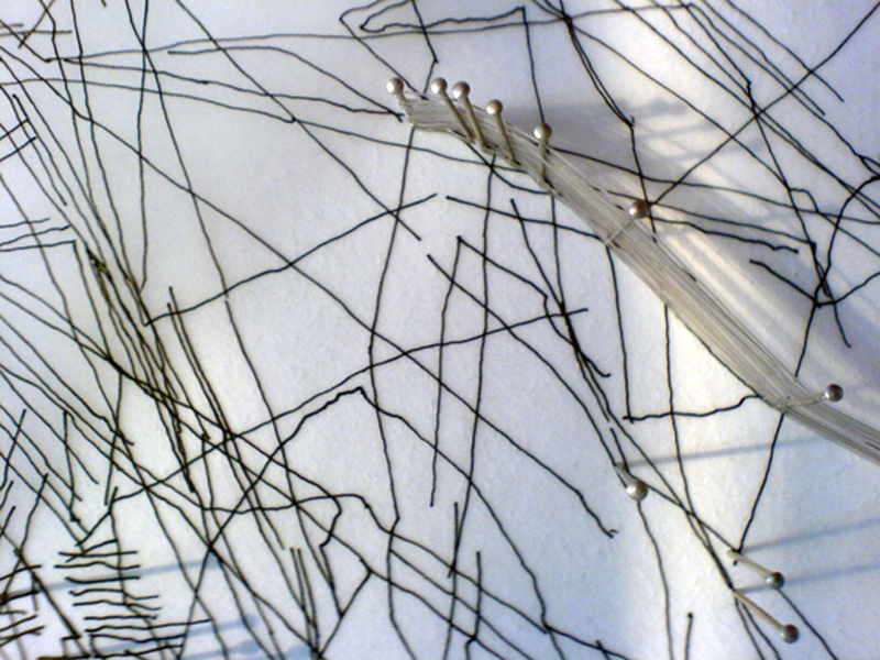 Transparentpapier,Tusche, Stecknadeln, Anglersehne, ca. 50x80x3 cm